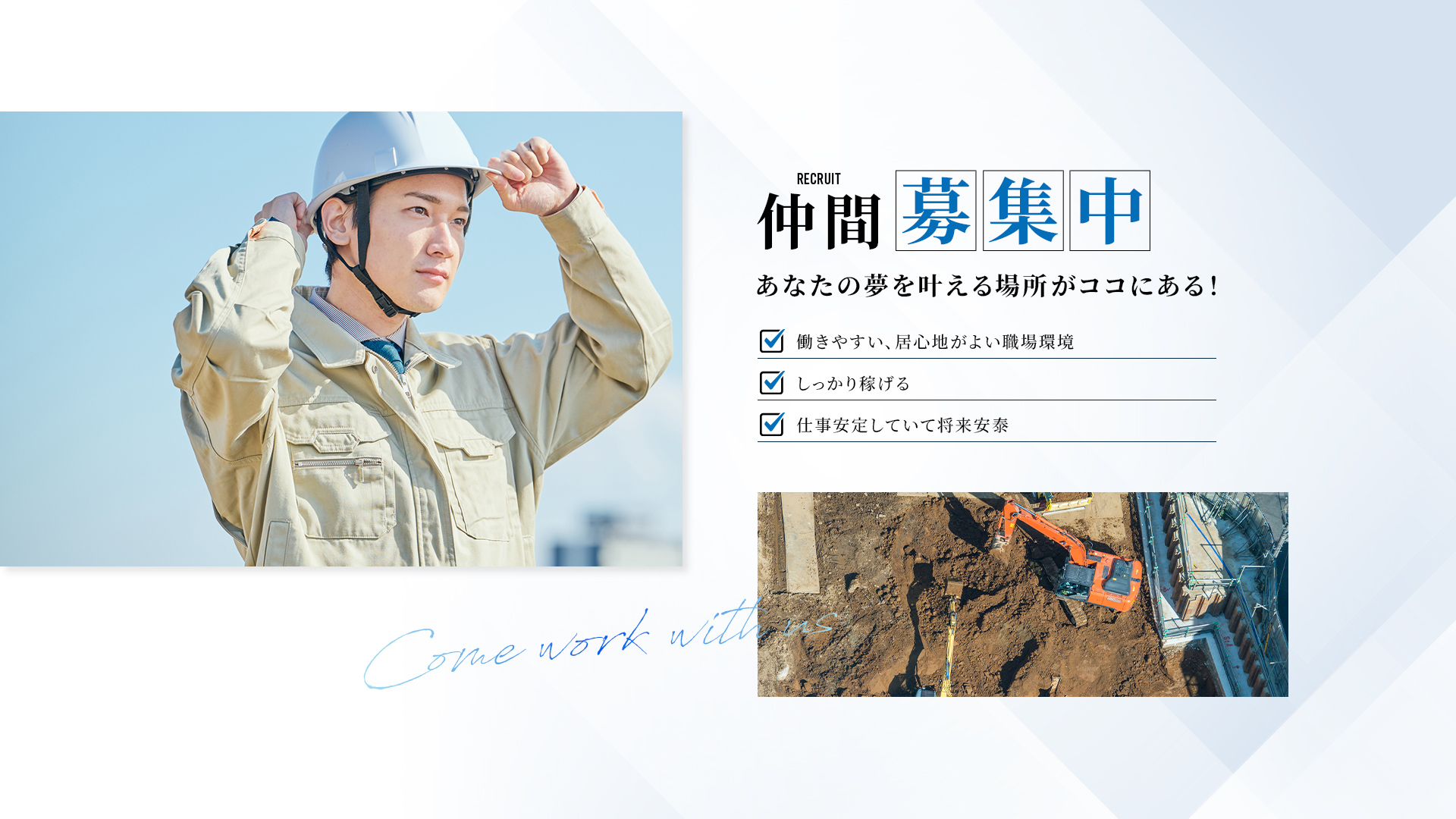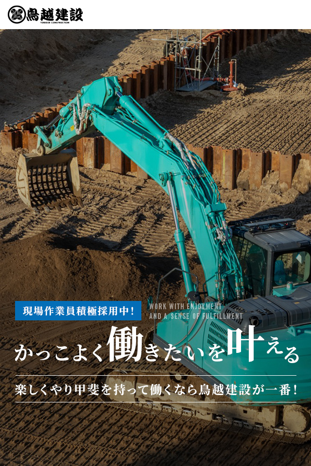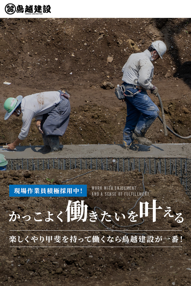 鳥越建設では、共に仕事に愛情を持って取り組んで頂ける仲間を募集しています。